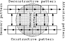 In summary I distinguish at least four types of patterns based on their locus and function in the neural network. Sensory devices provide sensory patterns. The attention mechanism provides attention patterns. From the sensory devices up to the attention mechanism there arises a deconstruction pattern. From the attention mechanism down to the sensory devices there arises a construction pattern. The deconstruction and the construction patterns tend to mirror each other, but with opposite activation flows.